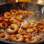 - Heat oil in a deep pan to 350°F (175°C). Fry the octopus in small batches for 3–4 minutes or until golden brown.