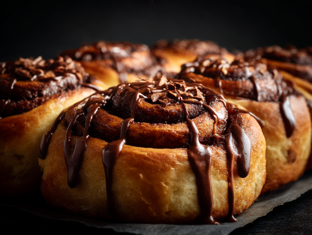 For chocolate lovers, these rolls combine the classic cinnamon filling with rich cocoa and chocolate chips, creating a fudgy, gooey treat. A drizzle of chocolate glaze makes them extra decadent.