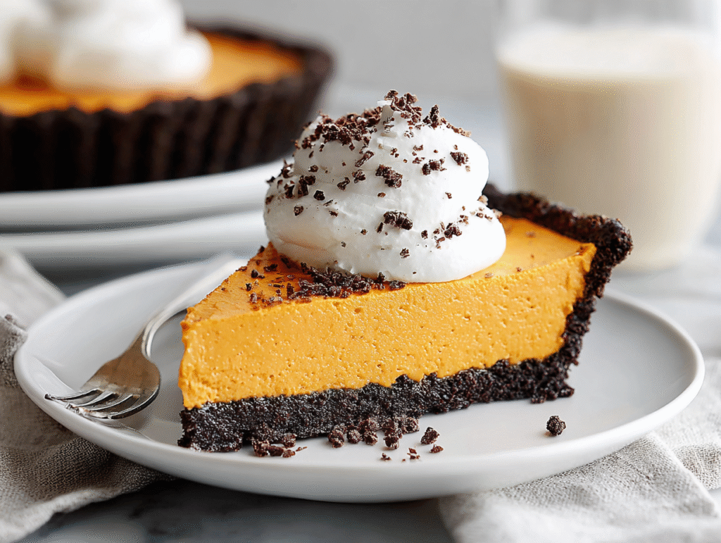 This Dark Chocolate Pumpkin Tart brings together velvety pumpkin spice and a —the dessert that’s going viral this winter on Pinterest. It has the warmth of pumpkin pie with the elegance of a French tart, making it perfect for cozy nights, holiday parties, and cold-weather baking.