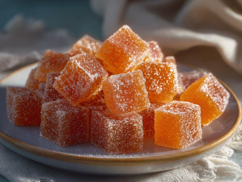 Homemade orange candy looks beautiful packaged in small boxes, jars, or cellophane bags. Its bright color, nostalgic feel, and chewy texture make it ideal for Christmas gifts, dessert trays, and party favors.