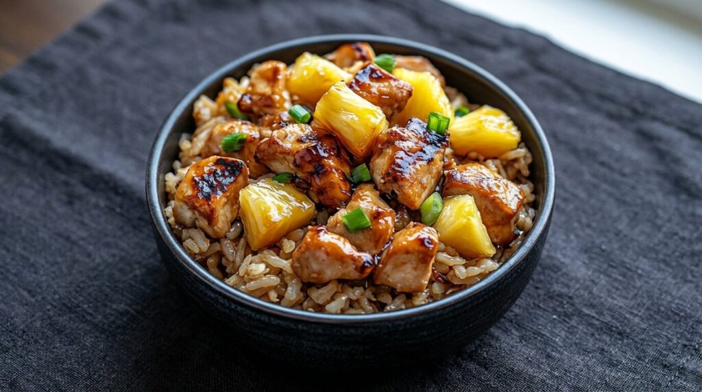 Keywords: pineapple chicken, rice, one-pan dinner, sweet savory chicken